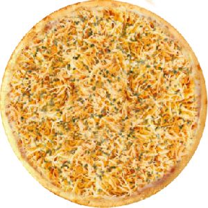 Bacon, Cebola, Frango Desfiado, Milho verde, Molho de Tomate, Mussarela, Orégano, Presunto