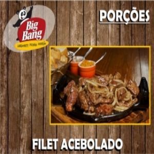 Filet mignon picado, Queijo mussarela, Batata palha e Molho especial.