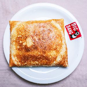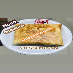 Frango desfiado, Banana assada com canela, Queijo mussarela e Molho especial.