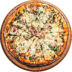 Bacon, Catupiry, Cebola, Lombo Defumado, Molho de Tomate, Mussarela, Orégano