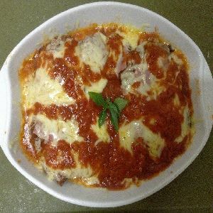 Calabresa Moída, Cebola, Molho de Tomate, Mussarela, Orégano, Ovos, Pimenta Malagueta